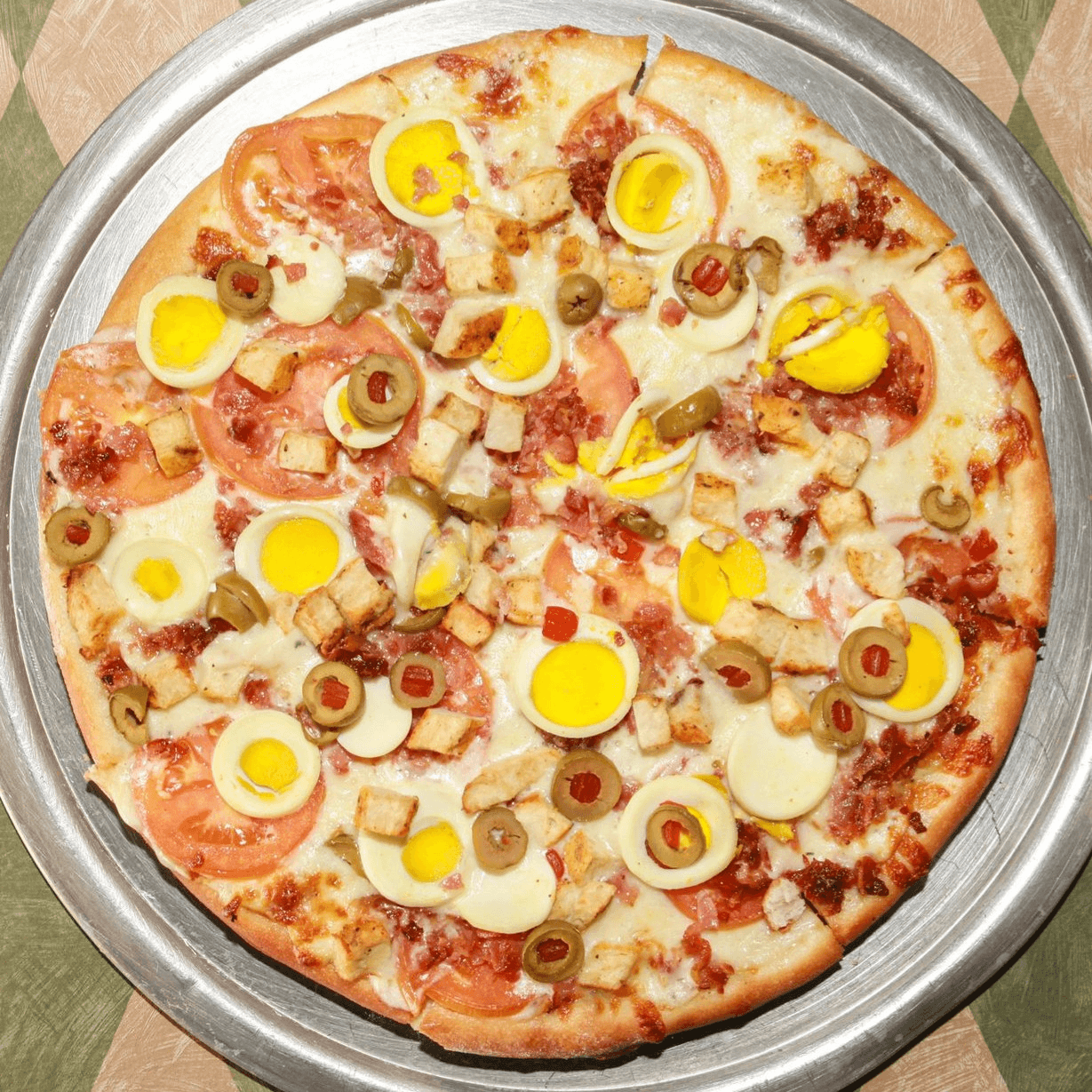 Chicken, catupiry, oregano, garnished with Kalamata olives