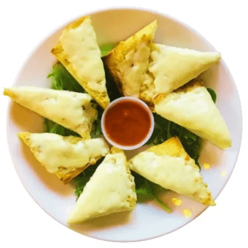Creamy garlic sauce, fresh basil, blended mozzarella, ricotta, parmesan, and provolone